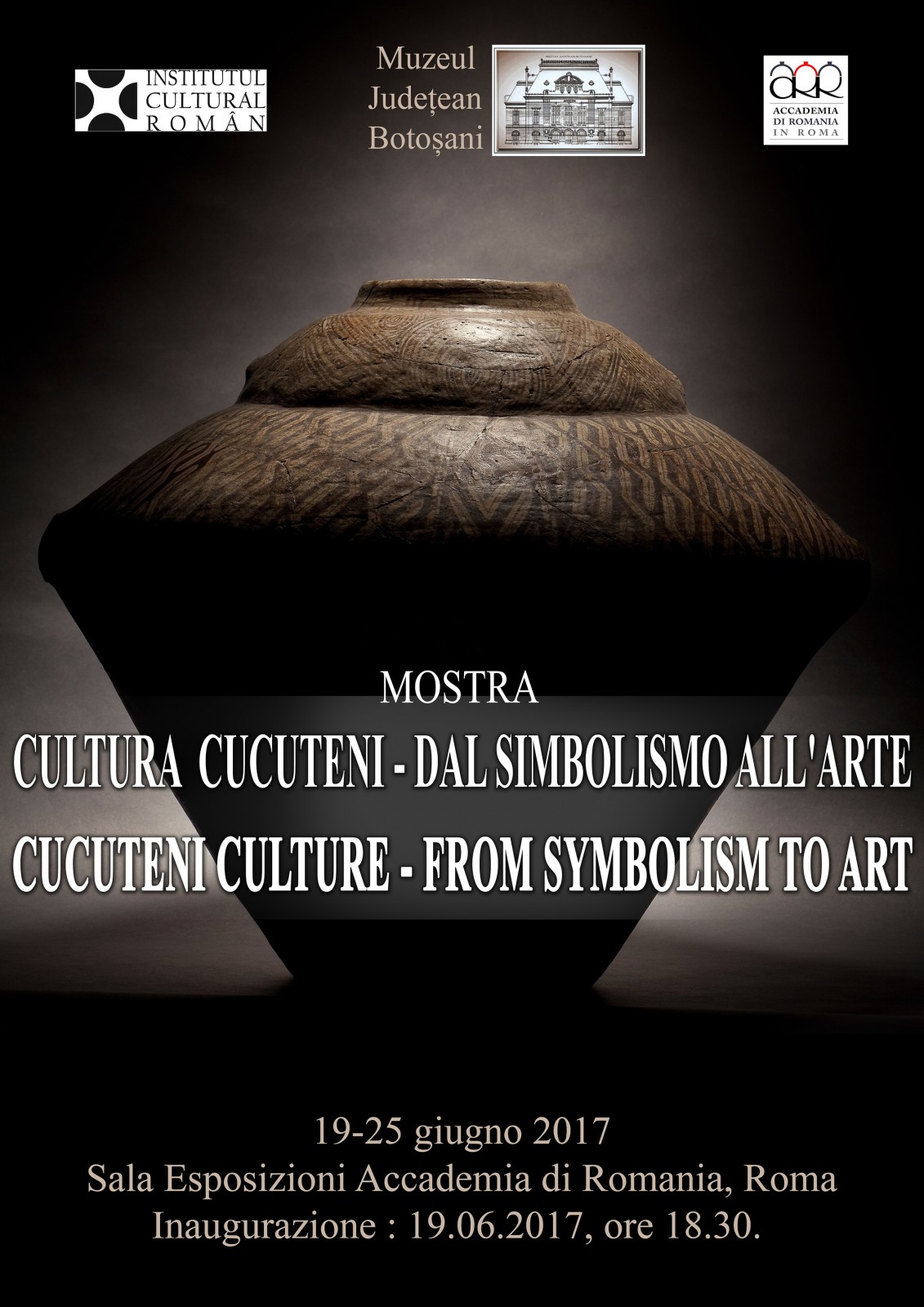The exhibition Cucuteni Culture – from symbolism to art, organized by the Botoșani County Museum in partnership with the Accademia di Romania from Rome and the Romanian Cultural Institute, aims to present the wonderful art of the Cucuteni Culture by illustrating the ceramics and clay statuettes discovered in Botoșani County .