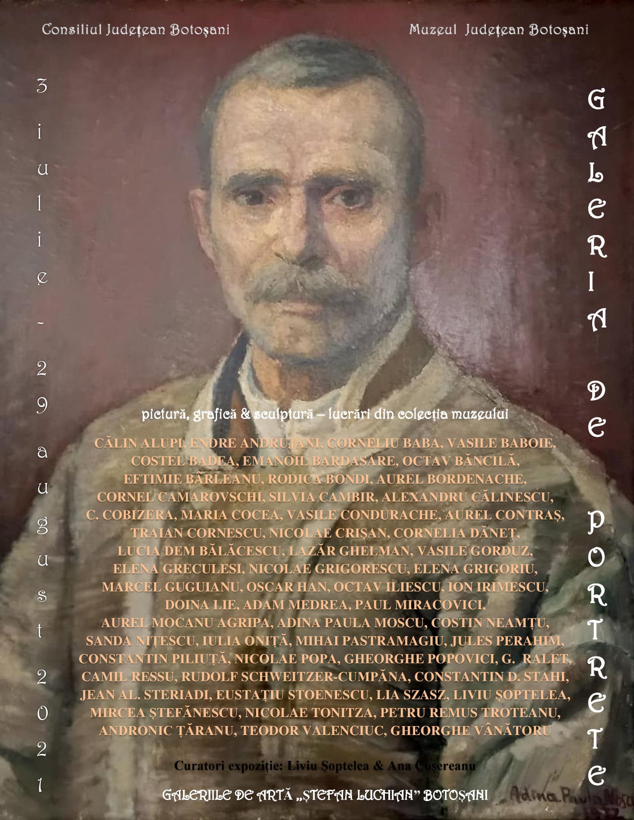 Muzeul Judeţean Botoşani – Secția de Artă Plastică și Etnografie a organizat, în perioada 3 iulie – 29 august 2021, la Galeriile de Artă ,,Ștefan Luchianˮ Botoșani, expoziția ,,galeria de portreteˮ.