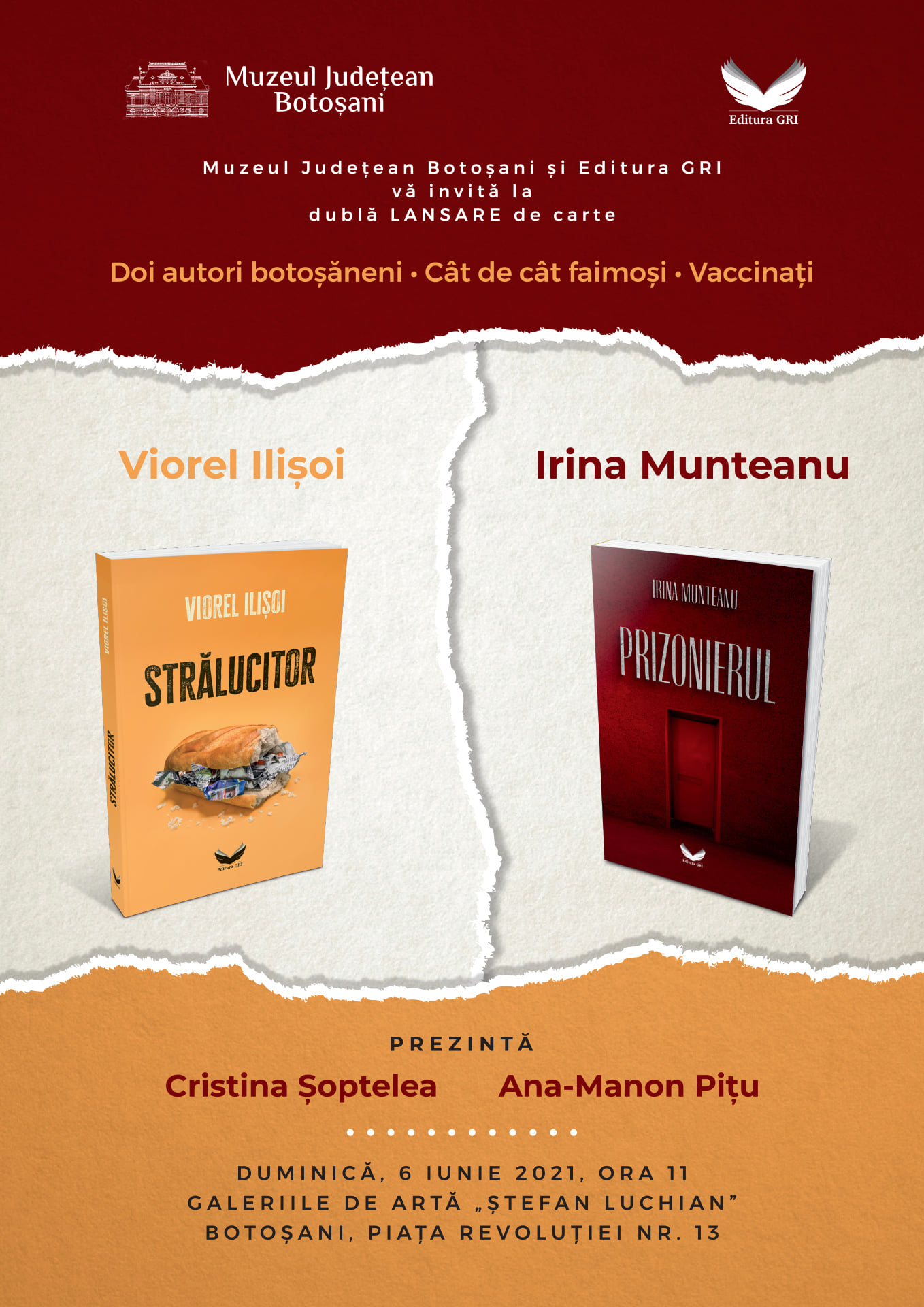 Lansare de carte – Viorel Ilișoi, „Strălucitor” și Irina Munteanu, „Prizonierul” 6 iun. 2021 | Evenimente