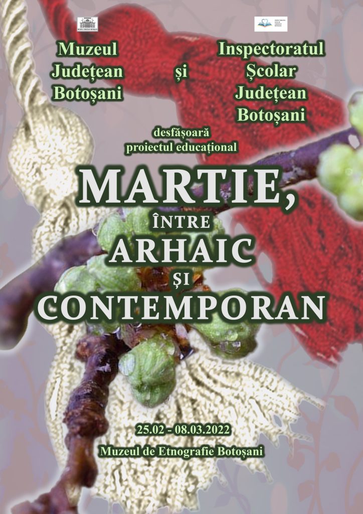 Muzeul Județean Botoșani, Secția de Artă Plastică – Etnografie, în parteneriat cu Inspectoratul Școlar Județean Botoșani, desfășoară proiectul educațional intitulat „Martie, între arhaic și contemporan”, în perioada 25 februarie – 8 martie 2022.